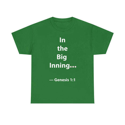 In the Big Inning Genesis 1:1 Unisex Heavy Cotton Tee – Perfect for Baseball Fans and Faith Lovers